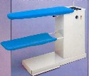 Vacuuming and heated ironing table with steam iron and built in electrical, automatic boiler.